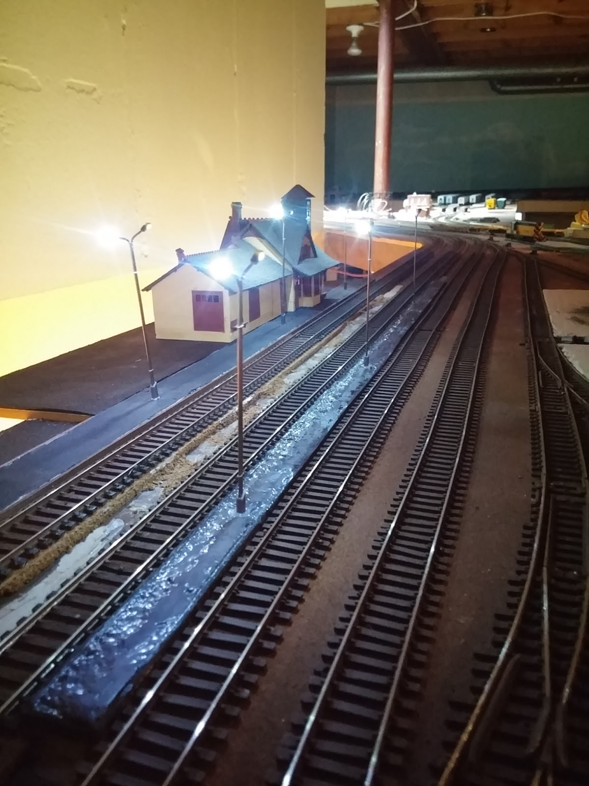 Jordan stopped by this afternoon for a couple of hours and helped me wire up some platform and street lights.