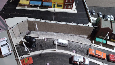 | Extending the road under the grain elevator. Next up: Need to put up the bridge section on the track level. |