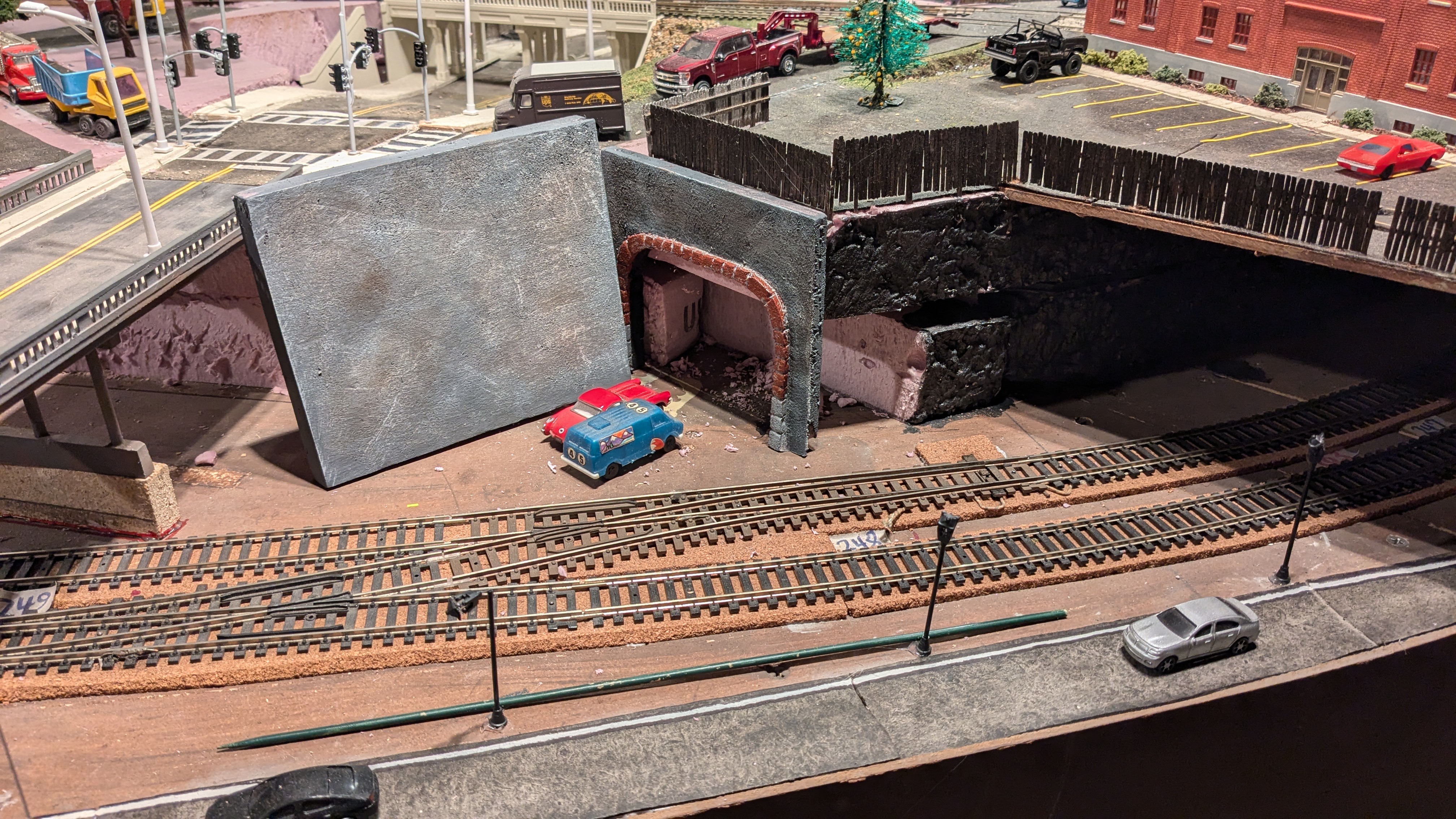 | Marcus brought the tunnel portal and the concrete wall which I will add to the scene this week. |